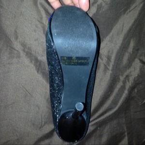 Brand new with box, never worn...sparkly black with blue tip. The shoe also has suede.