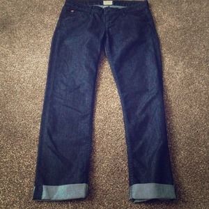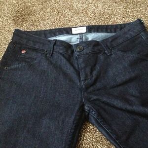 Authentic Hudson's. size 27. I am a solid 27, and these fit a little small. Form fitted, Stretch, and cropped (sewn cuff). Dark wash. Worn twice! 26" inseam. I am only 5'0", and these are full length on me... But they would be a cropped pant on anyone taller.