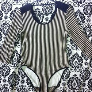 H&M Cream/Blk Vertical Stripe Bodysuit. Worn only once or twice and wore underwear with them so no worries there ladies. Does have shoulder pads. This is very cute just not flattering on my post- baby belly anymore 😩
