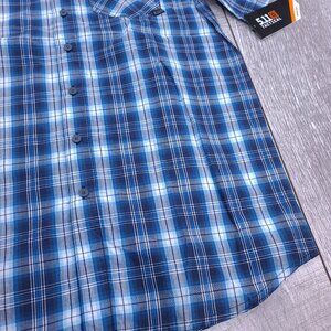 5.11 Tactical Shirt Mens Small Admiral Blue Breaker Plaid Pocket Short Sleeve