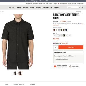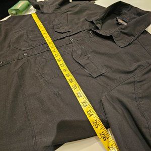 Men's 5.11 Tactical Stryke Black short sleeve shirt. Only lightly worn, in very good condition with no markings or stains. XL; please see photos for width and length measurements and manufacturer sizing chart. Purchased in USD, hard to find in Canada. Great for outdoors and as workwear. Popular with military and police. Very comfortable, sharp, smart and flattering look!