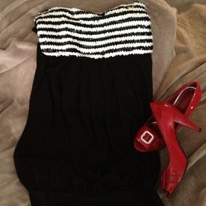 Strapless black and white sequin party dress worn twice at smoke free events:)