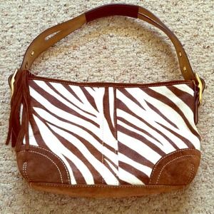Suede and calf hair brown & white zebra print. Excellent condition no stain inside or out. Carried maybe 2x. would consider less thru PP