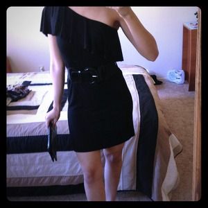Super cute & sexy little black one shoulder dress. It's form fitting & comfortable. Worn only twice, includes black belt.