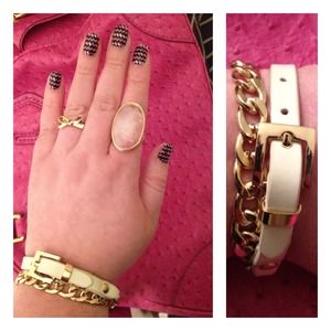 Cream with gold hardware and adjustable to fit any wrist size. Wraps twice around wrist and never worn!