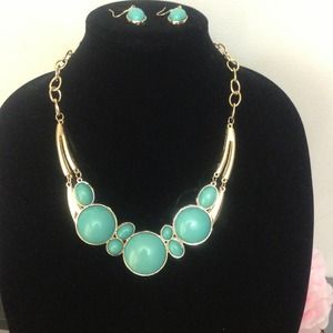 Mint color necklace set . Spring collection.