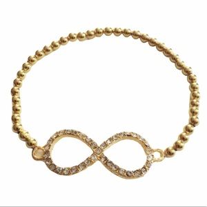 Gold tone acrylic bead infinity stretch bracelet. Fits 6 inch wrist a little loose.