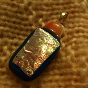 Dichroic glass on blue and orange, beautiful pendent 100% glass hand made, chan sold separate.