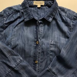 Super soft denim top from Nordstrom. High low style. Material is tencel (so soft!) features one breast pocket which is sewn on the inside. Would look cute with floral print denim or with a sundress. In like new condition. 🚫TRADES