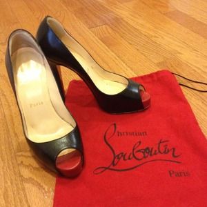 Authentic Christian Louboutin Black Peep-toe pump, sz 37, 4.75" heel with 3/4 inch platform