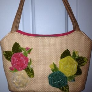 This is a cute beige purse with a unique floral detail. Perfect for the spring/summer. Hardly used!