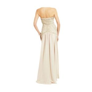@glitzandbeauty this is a stunning brand new dress with tag but its too long for me. The mannequin is 5'10". There are stain at hem, please see pic 4 but they are not obvious. If you are wearing it, some one will have to kneel down and look at it to see the stain.