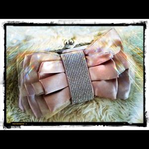 Great clutch could natch alot do to its neutral champagne color. I bought it to go with the gold silk strapless Bebe dress I wore to a wedding both were used just that time. Has a little water spot on back nothing anyone would ever notice!