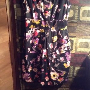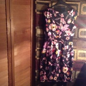 BEAUTIFUL, UNLINED BLACK WITH FLORAL PRINT 100% COTTON MAX AND CLEO DRESS.. Stunning bright floral print! Back zip close! a worn once! 3.5” “cap” sleeves. The dress is 38” long. SZ 6-ACTUAL MEASUREMENTS LYING FLAT: BUST 17”; WAIST 14.5”; HIPS 18”. FRONT SIDE POCKET ON EACH SIDR OF PLEATED “ SKIRT” PORTION. I AM 5’7” TALL AND IT COMES TO JUST ABOVE, GRAZING THE TOP OF, MY KNEE. PLEASE DO NOT HESITATE TO ASK ANY QUESTIONS!