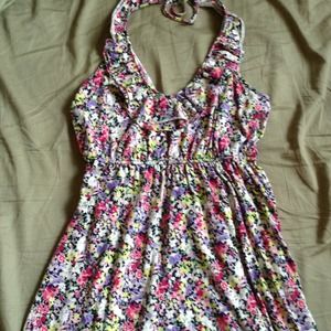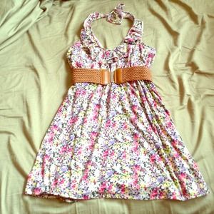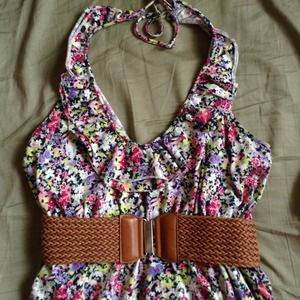 Beautiful feminine summer dress. Dainty floral pattern with cinched empire waist. Cute with or without belt (belt not included). Looks great with little denim jacket and sandals.