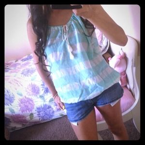 Mint and white stripes. Very light weight 70%cotton 30% silk! Adjustable tassel cords. Any questions feel free to ask! :) ☺👍