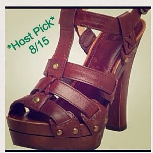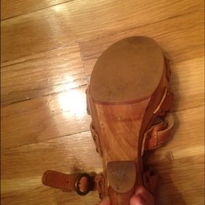 Sexy, but comfortable 41/5 inches platform wooden hills. They are perfect for day or night parties. They were my go to shoes last year and it's time for me to let it go. Few scratches here and there but it gives it a vintage look. Notice the 2nd pic on top left hand shoe has a Brocken piece, but still wearable. If interested I can get it fixed by my shoe repair guy for extra $10 or buy as is.