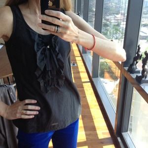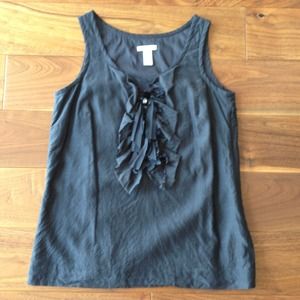 J Crew Alice ruffled tank- dressy cotton and silk, fully lined, sleeveless blouse with rhinestones, sequins and ribbon. Size 0 (comparable to a 2), black, and only worn once. Needs to be steamed. Perfect for work or a night out. $80 new!