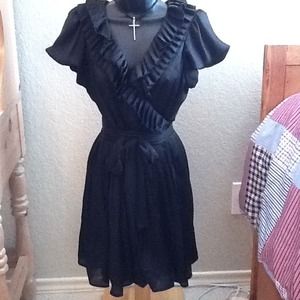 Beautiful black dress with ruffled collar, slightly puffed sleeves. Size is large, but will fit a small/medium