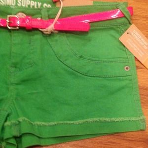 NWT! Green Cutoff Shorts w/ Pink Belt