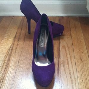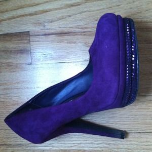 Worn once for my sisters wedding. A little too small for my feet. Pretty dark purple suede material. Let me know if interested.