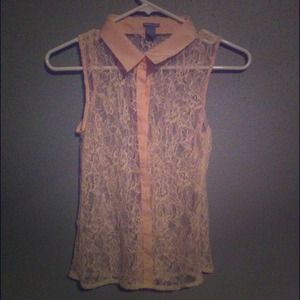 Lace floral print button up
