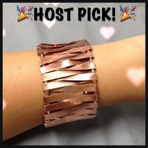 open rose gold plated with a woven zigzag pattern- beautiful bracelet can be worn alone or together with an arm party!