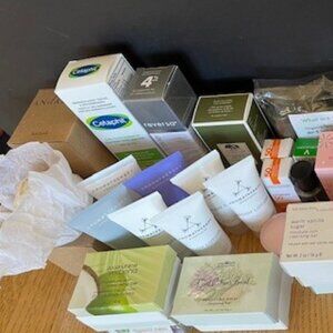 This set of 52 products includes 39 new, never used creams, lotions, soaps, etc.: REVERSA Anti-Wrinkle Corrective Night Crème 50ml. ; ORIGINS' Dr. ANDREW WEIL Mega-Mushroom Relief & Resilience 100ml. ; LANEIGE 3-pc. Sample set with Hyaluronic Cream Moisturizer, Cerapeptide Toner/ Moisturizer, & Overnight Lip Treatment ; CLINIQUE Moisture Surge ; 4 BATH BOMBS ; 7 Travel-sized U.K. AROMATHERAPY ASSOCIATES ; 8 pc. ORGANIQ Spa Travel Size ; CETAPHIL 50ml. Facial + SPF ; DRYBAR 30ml. body lotion ; 2 LA ROCHE-POSAY 3ml. SPF ; 8 BATH & BODY WORKS Soaps (5-2 oz., 3-1.5 oz.) ; 120gm. NATURALOE Bar Soap ; VICHY 3ml. Anti-Acne Lotion. Also included in this deal are 13 gently used/ testers, shown in final 2 photos: REVERSA Anti-Wrinkle Cream with Glycolic Acid 50ml.; DARPHIN Intral Complex & Intral Toner ; SHIRO (Japan) Hand Serum ; BULGARI Face Emulsion & Body Lotion ; PERLES DE LALIQUE Perfumed Body Lotion; 2- 30ml. JONATHAN ADLER Lotion ; LANVIN Body Lotion ; CLINIQUE Moisture Cream ; 2 AROMATHERAPY ASSOCIATES Body Lotions. Price includes a total of 52 items plus a few bonus surprises!