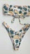 Size Small bikini. Bottoms are a cheeky style and the top is backless/adjustable. The top is approximately 12” pit-to-pit. This bathing suit is in good condition and has been lightly worn, however there is a bit of pilling on the back left side of the bottoms. For more details, please see photo attached.