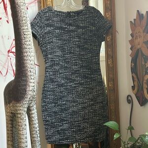 Step out in style with this elegant black and white tweed dress. Perfect for any occasion, this dress offers a sophisticated look with its classic design.