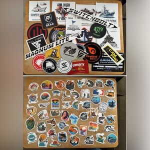 60+ Collection of assorted stickers featuring various designs and logos. Misc fishing and random stickers. Perfect for customization and decoration.