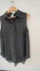 Chic sleeveless blouse with a classic collar. Black and white speckled pattern. Perfect for versatile styling.