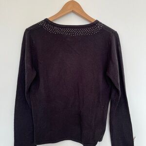 Elegant black sweater with a studded neckline. Perfect for casual or dressy occasions. Soft and comfortable material.