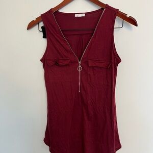 Elevate your wardrobe with this stylish burgundy sleeveless top. Perfect for any occasion, it features a chic zipper detail and a flattering fit.