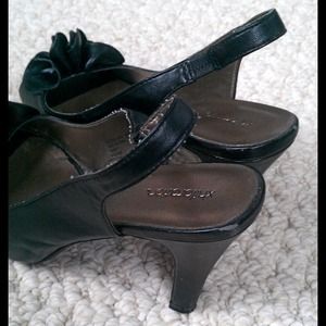 These girly pumps are so glam with their ruffled peep toe. Only worn maybe 3 times. Minor wear noted in pics.