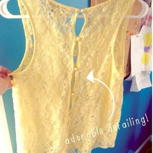 Yellow lace tank top with pearl and gold button up back. Perfect condition, worn once. Size large.