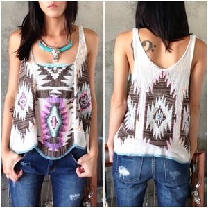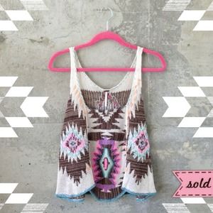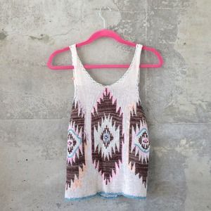 delicately woven tank from free people. tag reads large but fits me as an oversized small. the tank is suppose to be cropped when properly sized so this also gives it a little bit of length paired with a cute bandeau. perfect condition, worn once.
