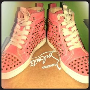 These are a new in box christian louboutin pink suede sneakers. It has rose gold studs and the classic red bottoms ! Can't find them anywhereeeee !!!