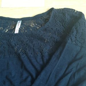 EUC black top with crochet accents. Says size small but fits more like a XS. I'd model it but its too small for me. No stains, tears, or marks. Perfect for any fall occasion!!!! No trades.