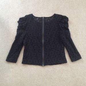 Go all-out for a night out with this edgy black lace top! Features zippers on the shoulders and down the back. Size medium but fits more like a small.