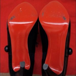 Black calf leather ankle booties, 110mm with 10mm hidden platform, size 36.5 fits snug 6 or 5.5 with socks. It was a little tight on me so it was only worn once. There are very minor scratches on the leather mainly from storage, the heel and sole are as shown, very excellent condition.