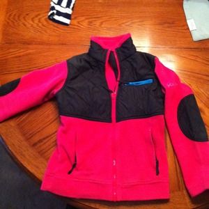 Pads on the elbows. Pink fleece. And a small blue zipper