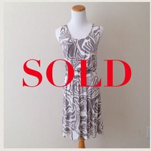 Details: Gray and white, animal/abstract print, lightweight, knee-length dress.