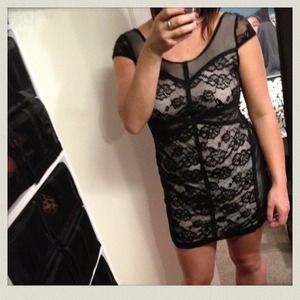 Sexy Black/nude lacy dress with cap sleeves. Only wore one night out in Vegas.