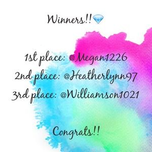 Congrats to my winners!! I will be giving the 1st and 2nd place their prizes on Wednesday my 3rd place winner's prize can be used anytime til November 16th! πππ