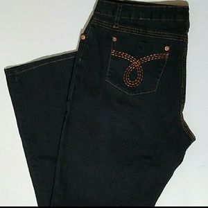16-Black copper trim straight comfort jean. Inseam 30. Waist measures 18in Front top button to center rise measures 11'