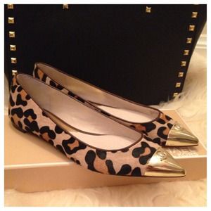 (Sizes are AVAILABLE... Please check with me if U NEED DIFFERENT Size) Brand new pointed toe flats by MICHAEL Michael Kors. Stylish Leopard printed haircalf gives a statement to these flats. Calf hair upper, leather lining, man made sole, metal cap with embossed logo.