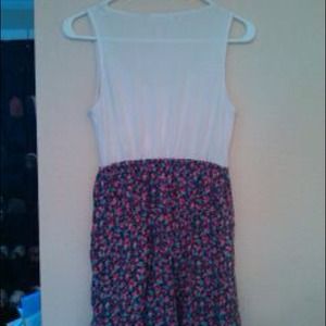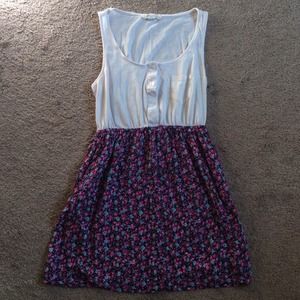 White tank with floral skirt dress, buttons on chest, pockets in skirt, gorgeous floral pattern. So comfy and casual! Size M, gently worn