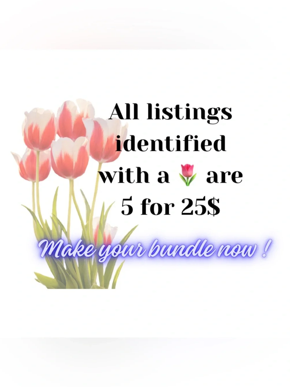 But if you’re not able to do another complete bundle and you want to put some more, each additional items of those 🌷5/25$ listings will be 7$