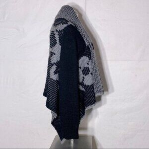Alison Sheri Black Grey Knit Open Front Waterfall Cardigan M